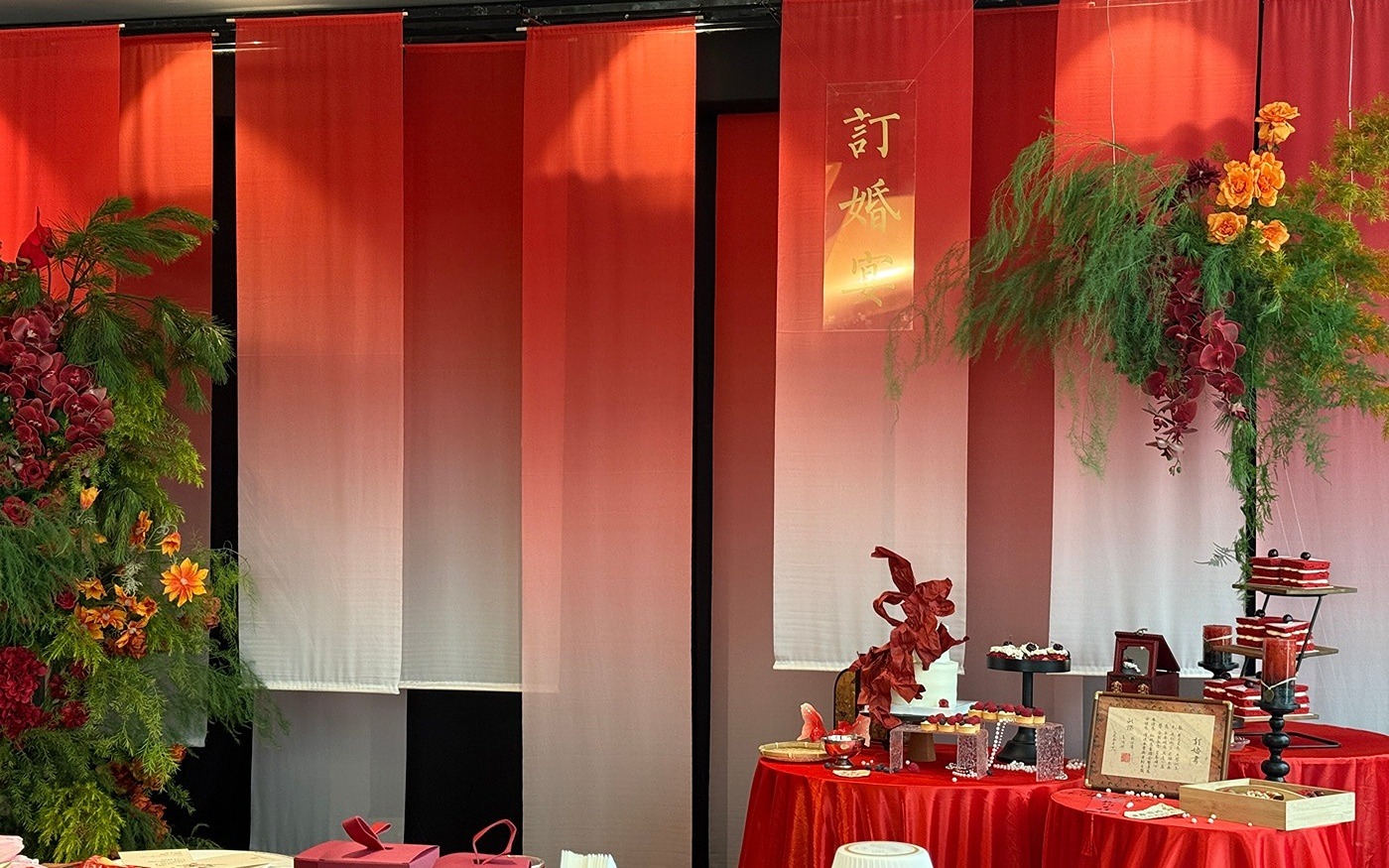 红色纱幔订婚宴