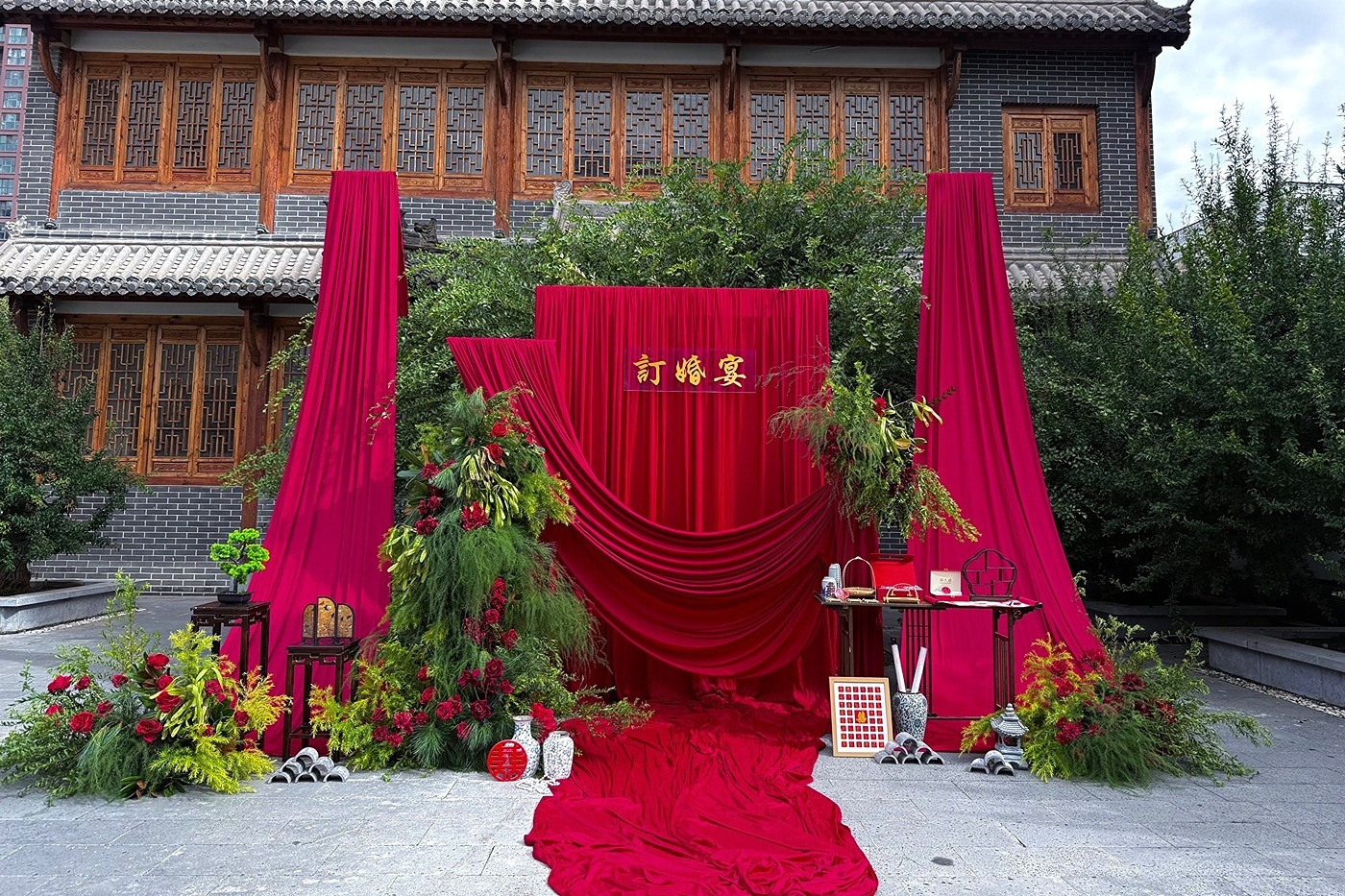 庭院红色布幔订婚宴