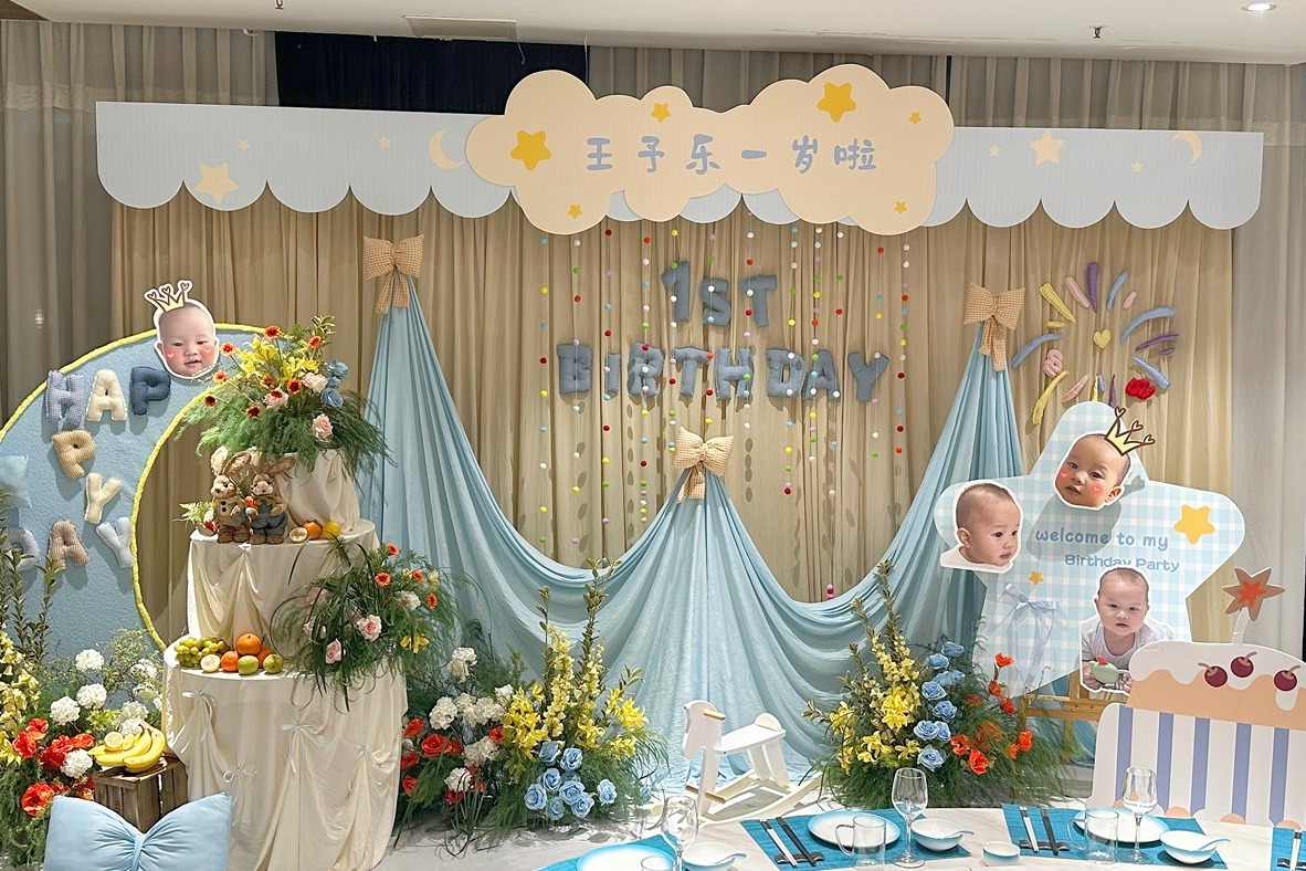 蓝色系布幔宝宝宴